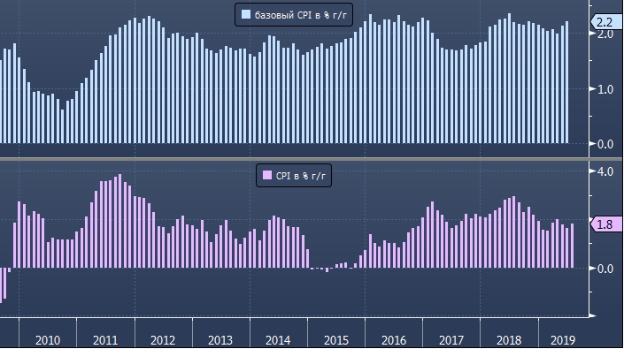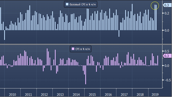 Отдельно стоит отметить, что 3-месячный базовый CPI вырос на 2.8%. Это максимальное значение за последние 8 лет. Экономисты в США утверждают, что такие цифры подтверждают: слабая инфляция в начале 2019 г. была обусловлена временными факторами.