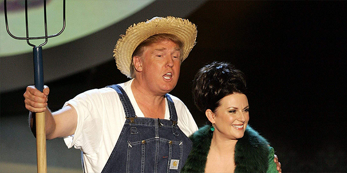 На фото: Дональд Трамп на церемонии Emmy Awards в 2005 году в образе фермера из сериала «Зелёные просторы»/AFP