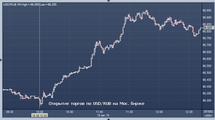 Таким образом, по официальному курсу ЦБ доллар вырос к рублю на 61 копейку, а евро вырос к рублю на 72 копейки по сравнению с официальным курсом субботы. Объем торгов на Московской бирже к 12:40 мск понедельника составил 867.1638 млрд рублей или 13 299.4062 млн долларов. Курс рубля сегодня падает на панике вокруг мировой рецессии.
