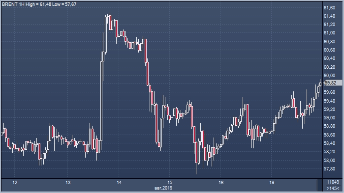 Котировки на рынке нефти демонстрируют позитивную динамику на американских торгах в понедельник 19 августа. Brent растет на 2.1% до $59.87 за баррель, при этом WTI дорожает на 2.72% до $56.36 за баррель.