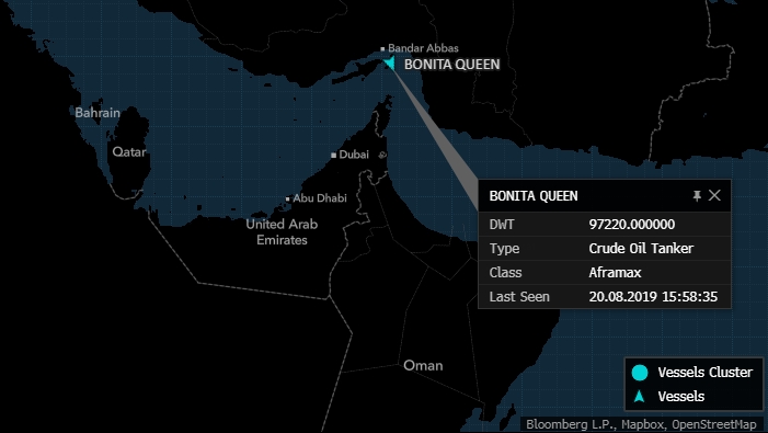 Танкер «Королева Бонита» был загружен 600 тыс. баррелей нефти 2 августа на острове Харг недалеко от побережья Ирана. Вскоре после этого судно, опасаясь санкций США, сменило флаг на флаг государства Сент-Китс и Невис.