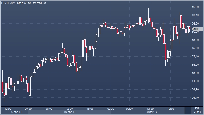 Нефть WTI завершает торговый день незначительным ростом. Котировки прибавляют 0.23% до $56.34 за баррель. Brent растет на 0.33% до $60.07 за баррель. Нефть была под давлением большую часть вторника, однако восстановила потери в течение американской торговой сессии еще до публикации отраслевого отчета API.