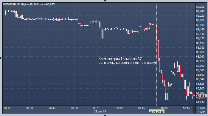 Российская валюта начала день с активного роста к доллару на фоне общего прилива оптимизма на финансовых рынках, повод которому дал президент США. Дональд Трамп сообщил, что его команда переговорщиков получила два звонка из Китая с предложениями возобновить переговоры, и подтвердил готовность американской стороны сделать это. Трамп также сообщил, что обсуждение ведется на самом высоком уровне — в него вовлечен и он, и председатель КНР Си Цзяньпин — и продвигается очень хорошо. Он выразил уверенность в том, что США и Китай смогут заключить сделку и положить конец торговой войне.