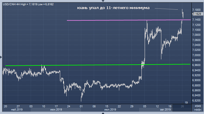 Оффшорный юань снизился на 0.3% до 7.1534, после падения на 0.86% до рекордно низкого уровня. В понедельник центральный банк установил дневную фиксацию на уровне 7.0570, что оказалось сильнее ожиданий аналитиков. На континенте курс юаня упал на 1.7% за восемь сессий.