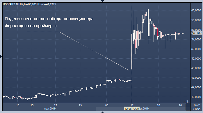 Президент-рыночник Маурисио Макри шокировал инвесторов своим слабым результатом на первичных выборах страны 11 августа. Это отправило аргентинские акции, облигации и валюту в штопор. Результаты вызвали обеспокоенность тем, что кандидат от оппозиции Альберто Фернандес и его напарница, бывшая президент Кристина Фернандес де Киршнер, вернут протекционистскую политику и реструктурируют государственный долг.