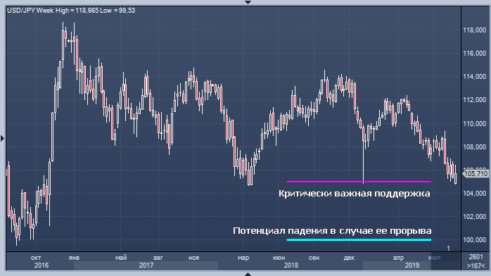 105 служит нижним пределом для USD/JPY в текущей ситуации, когда рынки уже заложили цену в худший сценарий торгового спора; тем не менее, существует риск разворота в случаекакого-либо позитивного развития торговых переговоров.