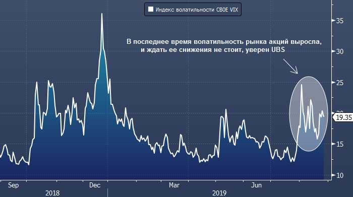UBS Global Wealth Management (ProFinance.ru: $2.5 трлн активов под управлением) рекомендует продавать акции впервые с мирового финансового кризиса. Банк понизил рекомендацию по доле акций в портфеле до «ниже рынка» и объяснил свое решение перспективами мировой рецессии, связанной с эскалацией торговой войны и замедлением в Европе.