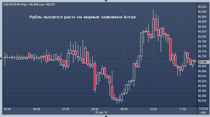 Новости из Китая немного разрядили обстановку и способствовали «выстрелу» фьючерсов на S&P 500. За акциями начала восстанавливаться нефть. Далее подтянулись и российские фондовые индексы, среди которых раллирует Газпром на словах Миллера о том, что коспания будет стремиться к выплате дивидендов в 50% от чистой прибыли по МСФО. В конце этой очереди подтянулся и рубль. Но рубль страдает от проблем всего блока ЕМ-валют, из которых выходят мировые инвесторы. Развивающиеся рынки неликвидны и выходить оттуда нужно очень аккуратно и осторожно.