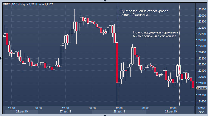 Борис Джонсон спровоцировал настоящую бурю своим стремлением заблокировать работу Парламента Великобритании с тем, чтобы тот не смог воспрепятствовать жесткому Брекзиту. Для участников рынка такие планы премьер-министра стали ударом, однако фунт довольно быстро стабилизировался.