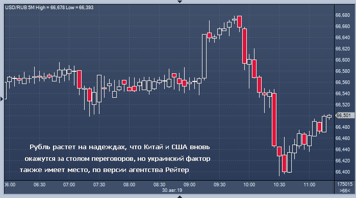 «Ключевым фактором риска для рубля на ближайшие дни выступает возможное введение дополнительных пошлин со стороны США на китайские товары, намеченное на 1 сентября. Вероятность такого исхода остаётся высокой, и при его реализации рубль вновь будет тестировать отметку 67 за доллар», — предупредил Григорий Жирнов из банка Нордеа, отметив позитивный характер для рынков вчерашних сообщений об обсуждении между США и Китаем возврата к переговорам в сентябре.