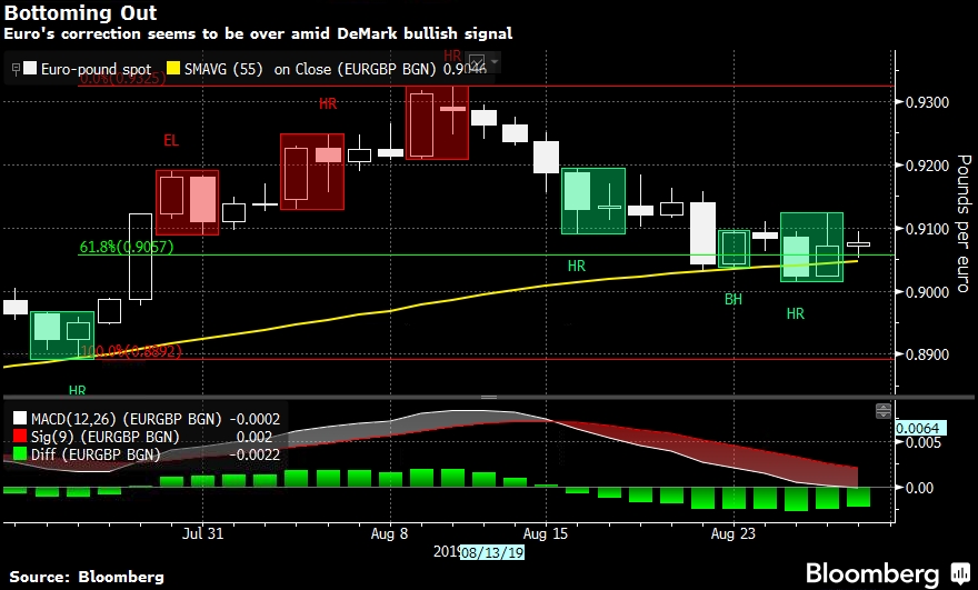 Политические события, связанные с Brexit, будет доминировать среди факторов динамики валютной пары евро/фунт на предстоящей неделе, перевешивая экономические данные и перспективы денежно-кредитной политики. Столкновение между премьер-министром Борисом Джонсоном и законодателями, выступившими против жесткого Brexit, вероятно, достигнет своего апогея, когда во вторник парламент вернется с летнего перерыва и будет заседать всего неделю, прежде чем приостановит свою работу, согласно повелению королевы. Трейдеры будут наблюдать за судебными слушаниями, направленным на блокировку инициативы Джонсона ограничить время работы парламента. Похоже, что в последнее время евро нашел дно против фунта, несмотря на то, что данныепо-прежнему рисуют мутные перспективы для региона.