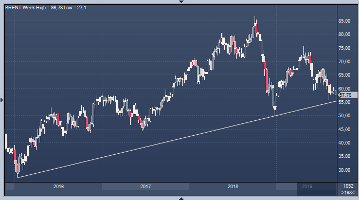 Сентябрь начался не с торговых переговоров США и Китая, а с взаимного введения новых пошлин, в отношении развивающихся рынков на фоне кризиса в Аргентине царит пессимизм, а ОПЕК впервые с начала года нарастила добычу. В PVM не видят, как в таких условиях нефть может расти, тем более что техническая картина складывается не в пользу быков. Аналитики обращают внимание на прорыв брент ниже 5, 8 и 13-дневных скользящих средних, что предполагает риски роста активности продавцов и новых попыток штурма минимумов августа и линии поддержки с января 2016 в области $55.87/$55.30.