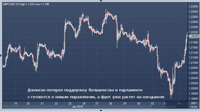 В среду стерлинг подскочил более чем на полпроцента по отношению к доллару, в то время как показатели волатильности валюты снизились после того, как британские законодатели, выступающие против жесткого развода с ЕС, захватили контроль над парламентским большинством. Ожидается, что законодатели, лишившие правительство премьер-министра Бориса Джонсона парламентского большинства поздно вечером во вторник, внесут в среду в парламент законопроект, направленный на то, чтобы не дать Британии покинуть Европейский союз 31 октября без соглашения на переходный период.