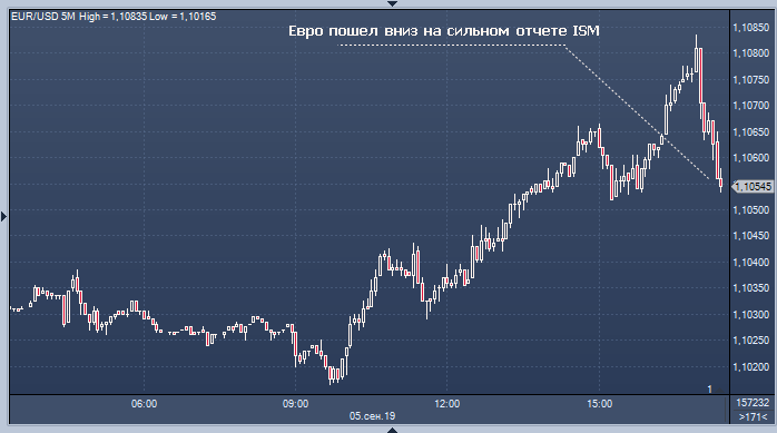 Индекс деловой активности в сфере услуг США в августе вырос до 56.4 пункта с июльского уровня в 53.7, показали данные американского Института управления поставками (Institute for Supply Management, ISM). Аналитики, опрошенные агентством Рейтер, ожидали роста индикатора только до 54. Деловая активность и новые заказы были оживленными (выше 60), но компонент занятости упал до 53.1, самого низкого значения с марта 2017 года. Экспортные заказы также упали до 50.5, повторяя динамику производственного отчета днем ранее.