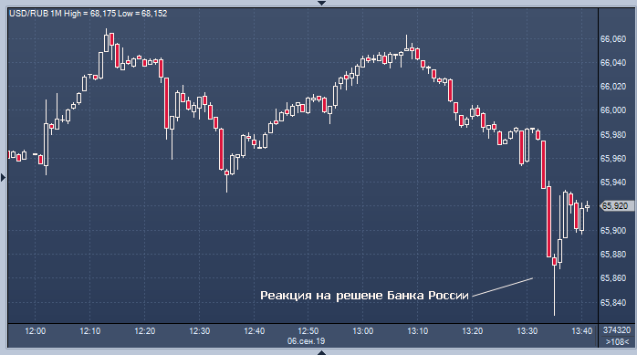 Экономическая активность была ниже ожиданий Банка России, что обусловлено снижением внешнего спроса на товары российского экспорта в условиях происходящего замедления мировой экономики, а также со слабой динамикой инвестиционной активности, в том числе в части государственных инвестиционных расходов. В июле продолжился годовой рост промпроизводства, однако опережающие индикаторы за июль—август указывают на возможность ухудшения ситуации в промышленности. В условиях стагнации реальных располагаемых доходов населения продолжается снижение годового темпа роста оборота розничной торговли. Рынок труда не создает избыточного инфляционного давления. Безработица на исторически низком уровне обусловлена не расширением спроса на труд, а одновременным сокращением численности занятых и трудоспособного населения.