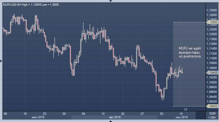 Попытки роста EURUSD встречают отпор выше 1.1060, но спады пока носят ограниченный характер, и в Mitsubishi UFG отмечают, что ослабление страхов относительно Брекзита играет на руку быкам по евро. В банке допускают некоторое развитие восстановления пары, в частности свежий импульс ему может придать ЕЦБ — аналитики полагают, что регулятору будет сложно удивить участников рынка, которые настроились на агрессивное смягчение политики с его стороны. Однако в MUFG предпочитают придерживаться нейтральной позиции, ожидая сохранения курса в диапазоне от 1.0900 до 1.1250.
