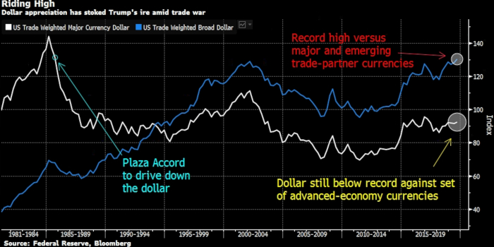 Вместе с «беспрецедентными» атаками на Федеральный резерв существуют «средства, мотивы и возможности» для потенциальной активности на рынке валют, сказал Нилер в своих комментариях по электронной почте. Нилер, который специализируется на финансовых услугах и вопросах торговой политики, подчеркнул, что правительство может инициировать большинство торговых дел самостоятельно, даже если сами американские компании воздерживаются от подачи жалоб на притеснения во внешней торговле в правительство. Хотя сам Трамп пообещал не вмешиваться с целью обесценить доллар, дебаты в администрации стали поводом для спекуляций на рынке по поводу возможности валютной интервенции против доллара США.