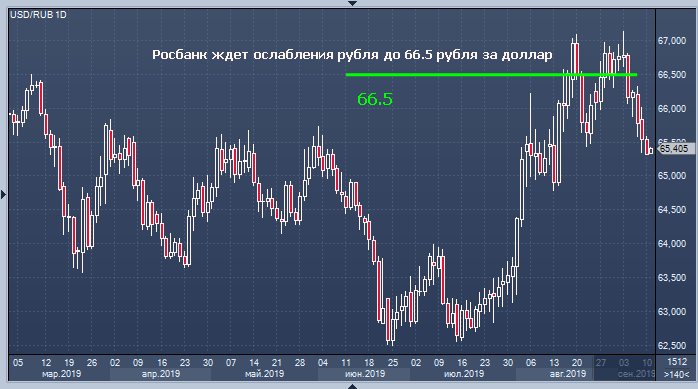 «На этом фоне мы ожидаем, что пара USD/RUB в 4к’19 будет на уровне 66.5», — прогнозируют в Росбанке.