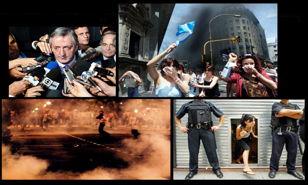 Когда жесточайшая рецессия вступила уже в свой четвертый год, уничтожив около двух третей валового внутреннего продукта страны, аргентинцы взбунтовались под лозунгом: «Они все должны уйти!». В течение двух недель в стране было пять президентов, и все они объявляли то, что было в то время крупнейшим дефолтом для страны в истории. Выплаты были приостановлены по облигациям на сумму 95 миллиардов долларов. Это привело к реструктуризации сделок с кредиторами в 2005 и 2010 годах при Несторе Киршнере и его жене Кристине Фернандес. Большинство держателей облигаций согласились взять 30 центов на предложенный доллар, но некоторые из них во главе с хедж-фондом миллиардера Пола Сингера выстоял и потребовал полного погашения.