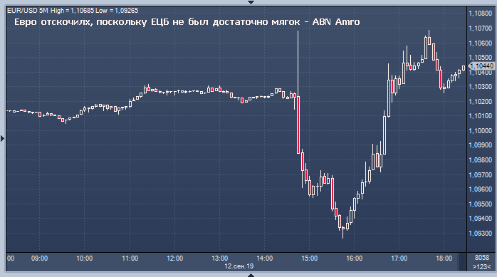 Примечание: Драги заявил после обнародования нового пакета стимулов, что вероятность рецессии низкая, что ЕЦБ снижает ставки, перезапускает QE, чтобы бороться с замедлением экономики, а не в целях конкурентной девальвации. Марио Драги рассказал, что ЕЦБ будет придерживаться «весьма адаптивной позиции по денежно-кредитной политике».