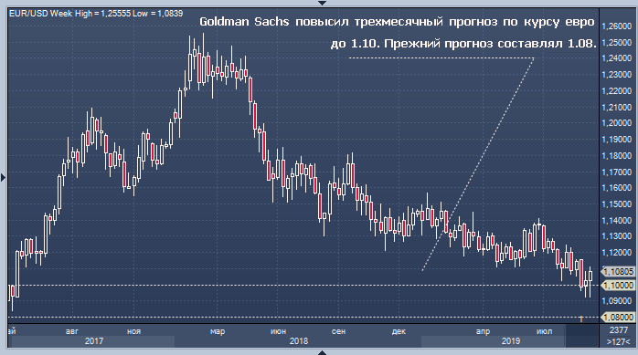 Goldman Sachs повысил трехмесячный прогноз по курсу евро до 1.10 после заседания ЕЦБ. Прежний прогноз составлял 1.08, сообщили стратеги банка Зак Пандл, а также Джордж Коул, в записке для клиентов в пятницу.