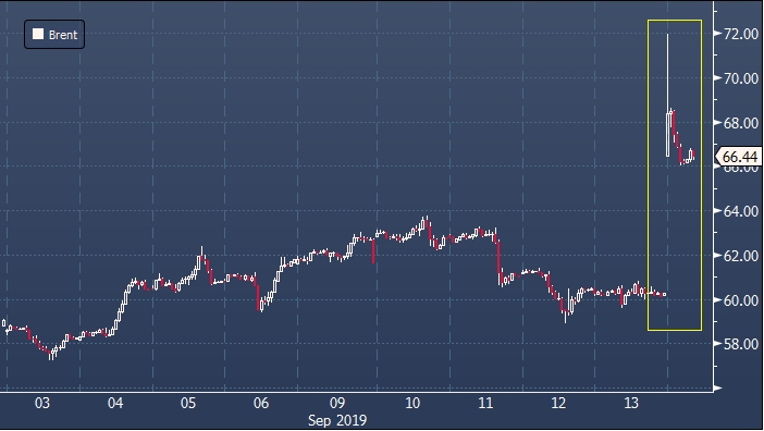 Напомним, нефть Brent резко взлетела выше $71 за баррель после атаки 10 беспилотниками нефтяных объектов Саудовской Аравии: нефтеперерабатывающее предприятие в Абкаике и второй по величине месторождение страны в Хураисе. В результате госкорпорация Saudi Aramco лишилась в субботу 5.7 млн баррелей в день.
