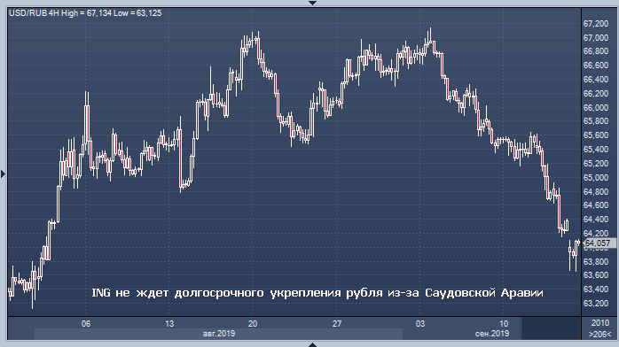 Долгосрочный потенциал укрепления рубля вслед за ростом цен на нефть ограничен действием бюджетного правила, а также снижением спроса на валюты стран с развивающейся экономикой, пишет аналитик ING Дмитрий Долгин в обзоре. Продолжительный рост нефти возможен в случае неспособности Саудовской Аравии восстановить добычу в течение нескольких недель и в случае эскалации напряженности на Ближнем Востоке.