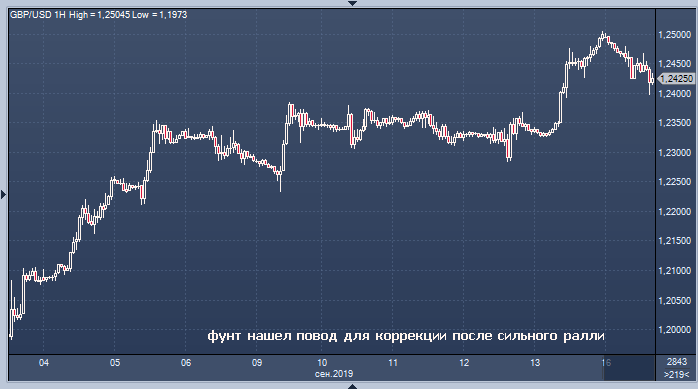 Стерлинг продолжает снижаться на фоне широкого укрепления доллара, посколькупремьер-министр Великобритании Борис Джонсон пропускает запланированнуюпресс-конференцию со своим коллегой из Люксембурга. Беттель из Люксембурга также заявил, что от Великобритании не поступило никаких конкретных предложений по изменению текущей сделки по Brexit. Джонсон, со своей стороны, сказал, что второго референдума не будет. По словам европейского трейдера, на данный момент тестируется поддержка выше 1.2400. GBP/USD падает на 0.7% до 1.2415. Ралли фунта ранее остановилось на ключевом уровне Фибоначчи, поэтому текущий откат может быть блеклым.