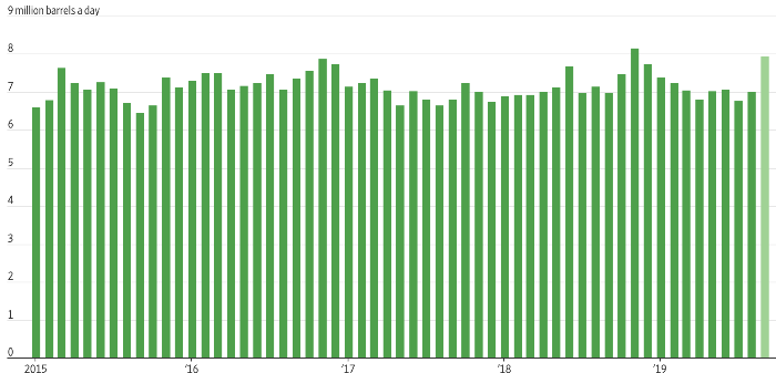 Спрос на нефть США вырос после атаки на саудовские нефтяные объекты
