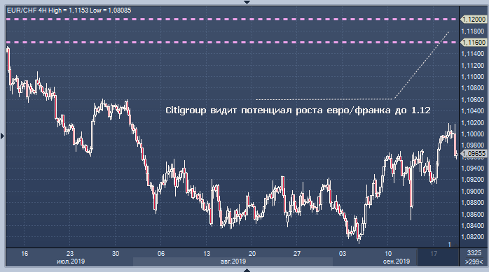 Евро, как ожидается, протестирует более высокие уровни против швейцарского франка на фоне закрытия во вторник выше 55-дневной скользящей средней в сочетании с прорывом многомесячного нисходящего канала, сообщил Том Фитцпатрик, главный технический стратег Citigroup.