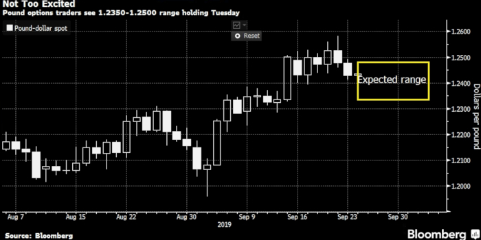 Стратеги по фунту прогнозируют незначительное влияние на валюту исторического решения Верховного суда Великобритании во вторник о том, нарушил липремьер-министр Борис Джонсон закон, приостановив работу парламента. Все потому, что вердикт, каким бы он ни был, мало что изменит в понимании крупнейшего неизвестного на горизонте британских рынков — неопределенности относительно того, выйдет ли Британия из Европейского союза с соглашением или без него 31 октября. Или, если страна подойдет к этой дате без сделки, возможное ли еще одно продление сроков Брексита?