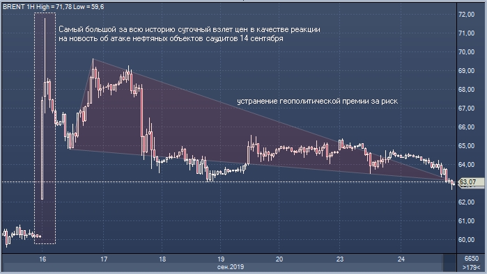 Также давление на нефтяные котировки оказывает обещание Саудовской Аравии в кратчайшие сроки (до конца сентября) восстановить работоспособность нефтяной инфраструктуры, которая пострадала от атак беспилотников 14 сентября.
