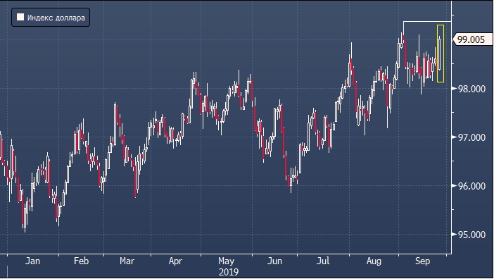 3 сентября индекс доллара вырос до 99.37, что является максимумом с середины мая 2017 года. Если показатель поднимется выше сопротивления на 99.50, это может дополнительно увеличить спрос на валюту США. В среду индекс доллара поднялся выше 99 пунктов.