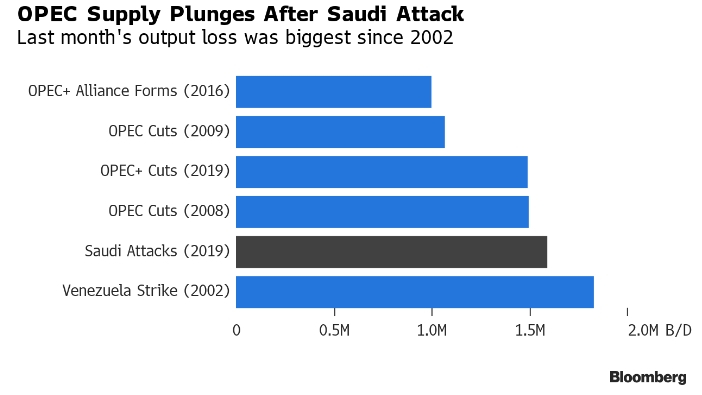 Объем добычи нефти ОПЕК в сентябре упал до самого низкого уровня за 16 лет после ракетной атаки на нефтяные объекты Саудовской Аравии. Объем добычи флагмана Картеля сократился вдвое. В начале лета хлористая нефть, попавшая в трубопровод «Дружба», привела к резкому сокращению поставок черного золота из России в Европу. Финансовые санкции США практически свели к нулю экспорт иранской нефти.