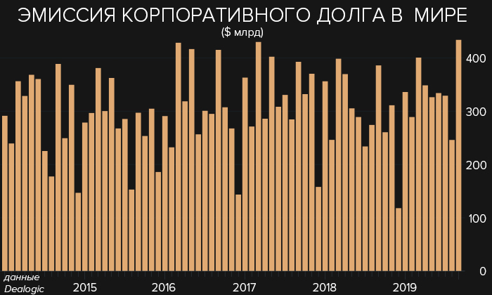 Ралли государственных облигаций в августе вкупе с сезонными факторами привело к тому, что в сентябре корпорации побили рекорд марта 2017 года по эмиссии новых долговых бумаг — данные Dealogic говорят о том, что их объем достиг $434 млрд. Свою лепту внесли такие гиганты, как Apple, которая впервые с ноября 2017 разместила облигации на сумму в $7 млрд, Disney с аналогичным объемом, а также Caterpillar и Wirecard, однако пользу из роста спроса на более доходные активы извлекают и небольшие компании.