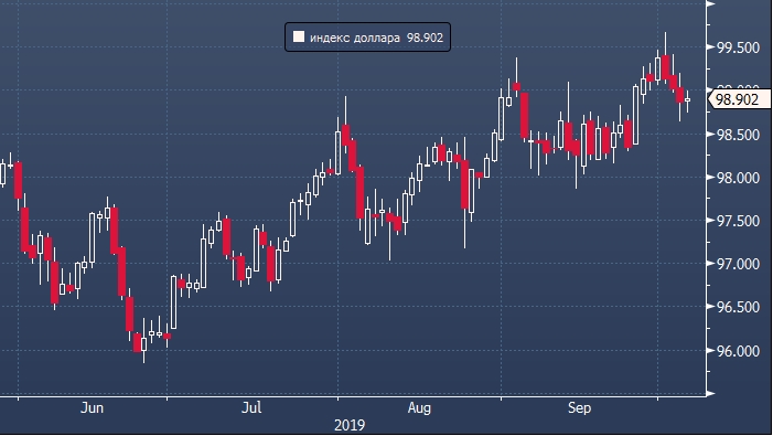 Во вторник, 1 октября, индекс доллара достиг максимума за 2 с половиной года на уровне 99.67 пункта, но с тех пор показатель упал на фоне негативной статистики по США и в настоящий момент составляет 98.91, пытаясь подрасти впервые за последние 4 дня.