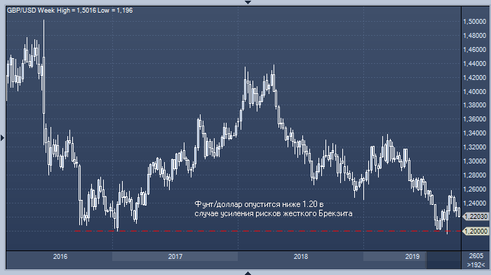 Если же парламентские выборы в Великобритании состоятся раньше, то курс фунта окажется под давлением, так как в этом случае премьер-министр Борис Джонсон, вероятно, попытается сыграть на противоречивом отношении к ЕС внутри страны и парировать нападки партии «Брекзита». Кроме того, при таком сценарии развития событий консерваторы могут получить большинство в парламенте, что увеличит вероятность жесткого Брекзита и повысит премию за риск владения фунтом стерлингов.