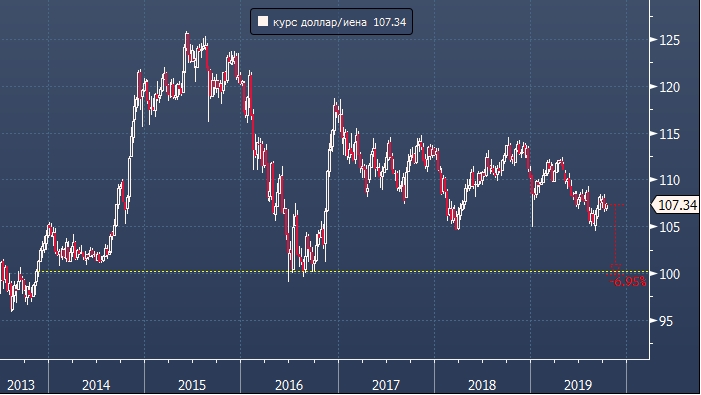 Краткосрочно ниже 100 иен за доллар курс опускался в 2016 году. Продолжительное нахождение ниже указанной отметки можно было наблюдать в 2013 году — 6 лет назад.