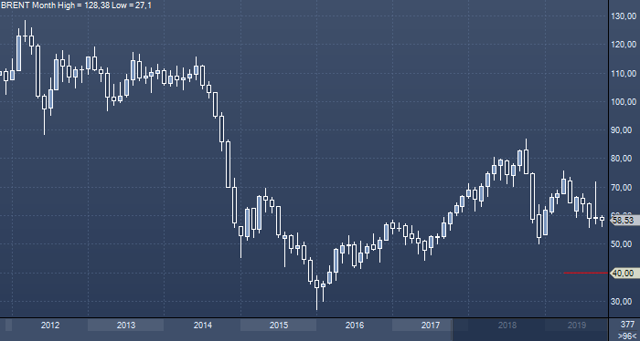 Вероятность того, что в 2020 году экономика США погрузится в рецессию, составляет 60%, пишут аналитики «Ренессанс Капитал». По их прогнозу, в случае рецессии за океаном курс доллара к рублю к конце следующего года вырастет на 10% с лишним, т. е. с текущих 65 до 73. Актуальный базовый прогноз компании по доллар/рублю на конец 2020 года составляет 67, что также заметно выше нынешних уровней.