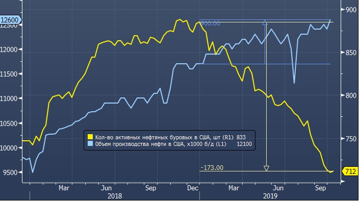 Таким образом, нефтяные установки впревые за 8 недель продемонстрировали рост. С начала года количество нефтяных буровых уменьшилось на 173 шт, при этом добыча в США за тот же период выросла на 900 тыс. баррелей в сутки.