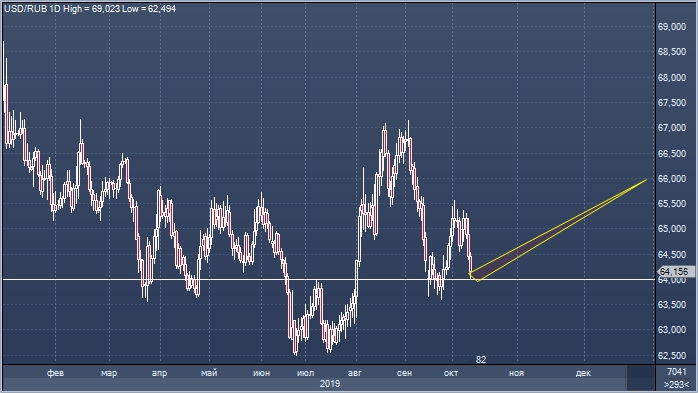 Курс рубля завершает торговую неделю ростом. В пятницу котировки в паре USDRUB проверили на прочность отметку 64.00. Это лучшее для российской валюты значение с 25 сентября.