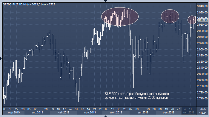С начала года индекс S&P 500 вырос на 19%, однако после многократных попыток ему так и не удалось закрепиться выше ключевой отметки 3000. Теперь мы видим риски падения этого индикатора в область августовских минимумов (ProFinance.ru: около 2800) к концу года.