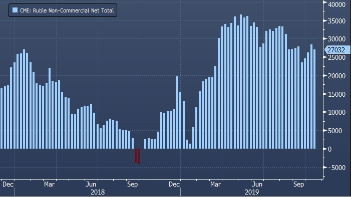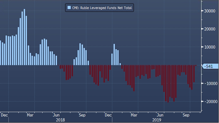 Если оценить статистику CFTC по рублю более подробно, то можно отметить, что сальдированная короткая позиция тех участников рынка, которые торгуют с кредитным плечом (leveraged funds) сократилась до минимального значения с января текущего года: -8 998 до 541 контракта.