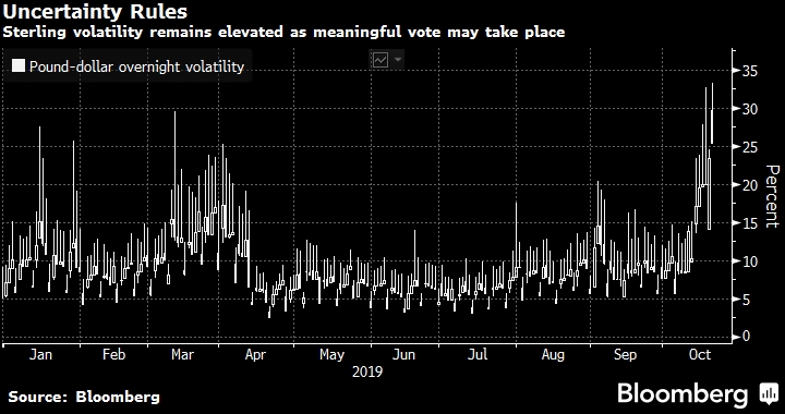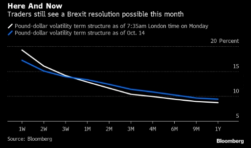 В пятницу корпоративные имена получили прибыль от ванильных колов, в то время как реальные деньги (real money) усилили медвежий настрой посредством покупки спредов в путах, рассказал Bloomberg европейский трейдер. Временная структура волатильности фунта остается в режиме глубокой инверсии, так как инвесторы держат пари, что сделка о Brexit имеет хорошие шансы быть принятой в самый последний момент. Анализ субботнего голосования и комментариев, которые члены парламента сделали в преддверии, показывает, что у премьер-министра все еще есть шанс законодательно оформить сделку по Brexit.