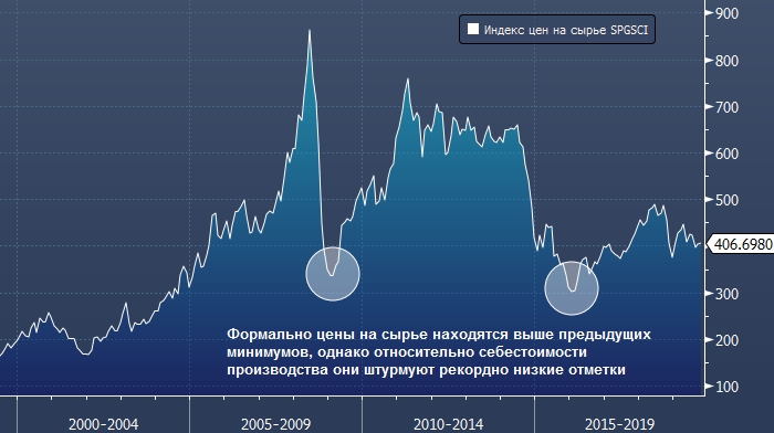 Сегодня средняя цена товарных активов примерно соответствует себестоимости их производства. Иногда цены падают и ниже, но такие периоды обычно являются короткими. По нашим данным, подобное происходило лишь четырежды за последние десятилетия: