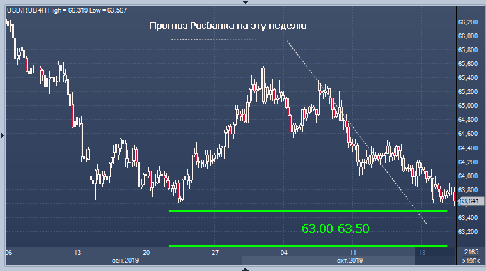Курс доллара к рублю освоился ниже уровня 64.0, пишут сегодня утром аналитики Росбанка. Укреплению российской валюты способствует как оптимизм инвесторов в преддверии заседания Банка России в эту пятницу (SGe: -50бп), так и предстоящие крупные налоговые платежи 25 октября. До конца этой недели Росбанк ждет укрепления рубля до уровней 63.0–63.5 за доллар, а ведущую роль в этом укреплении сыграют российские экспортеры. Банк России обнародовал прогноз выплат по внешнему долгу нефинансовыми организациями в 4к’19. Цифры показывают, что выплаты ожидаются на 17% меньше, чем в 4к’18, что также является положительным фактором для рубля, отмечают в Росбанке.