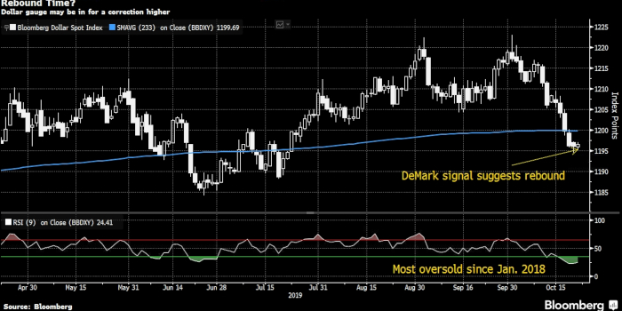 На графике представлен индекс доллара «Bloomberg Dollar Spot Index»