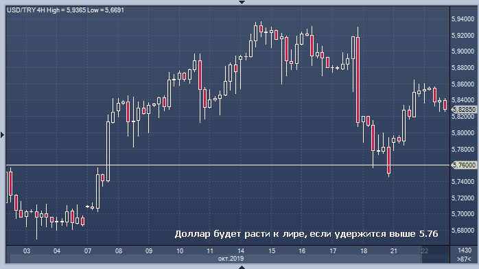 Перспективам укрепления доллара США против турецкой лиры вряд ли что угрожает, если валютная пара сможет удержаться выше 5.76, говорят аналитики Rabobank, отмечая, что соглашение о временном прекращении огня между турецкими и курдскими силами истекает позднее во вторник. По словам Петра Матиса, аналитика Рабобанка, дальнейшие боевые действия в северной части Сирии, «вероятно, приведут в замешательство инвесторов в лиру», поскольку это «возродит риск» того, что США наложат «гораздо более жесткие санкции» на Турцию.