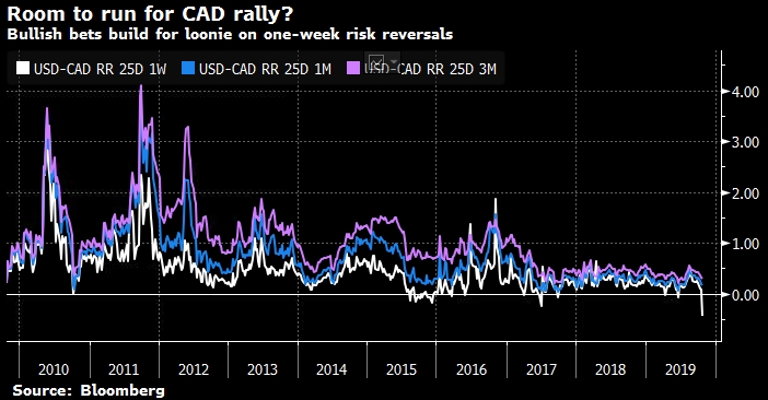 После того, как канадский доллар проигнорировал результаты выборы (Трюдо снова станет премьером и возглавит коалиционное правительство — прим. ProFinance.ru), он был подхвачен покупателями после выхода сильного обзора настроений в деловых кругах, нов дальнейшем снизился в реакции на слабые розничные продажи. Но на рынке опционов удивительно высока цена за бычий риск, который может реализоваться по итогам заседания центрального банка на следующей неделе, что является признаком того, что трейдеры выходят за рамки краткосрочного шума и делают ставку на рост.