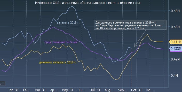 Цены на нефть немного выросли, но уже вернулись на предотчетные уровни, в реакции на публикацию официальных данных Минэнерго США по запасам. Данные оказались благоприятны для быков, но рынок сильно вырос еще до их выхода, поэтому некоторые трейдеры использовали отчет просто для фиксации прибыли. Основным факторами роста цен на нефть в последние дни остаются позитивные настроения в секторе рисковых активов в надежде на прорыв по Брекситу и в торговой войне США/Китая, а также вера в то, что ОПЕК+ сделает все для поддержания текущего уровня цен: саудитам нужно как можно дороже продать на IPO свою флагманскую компанию на фоне жесточайшего бюджетного дефицита. Возвращение с профилактики американских НПЗ, что отразилось в росте переработки, позволяет надеяться на дальнейшее сокращение запасов нефти в США.